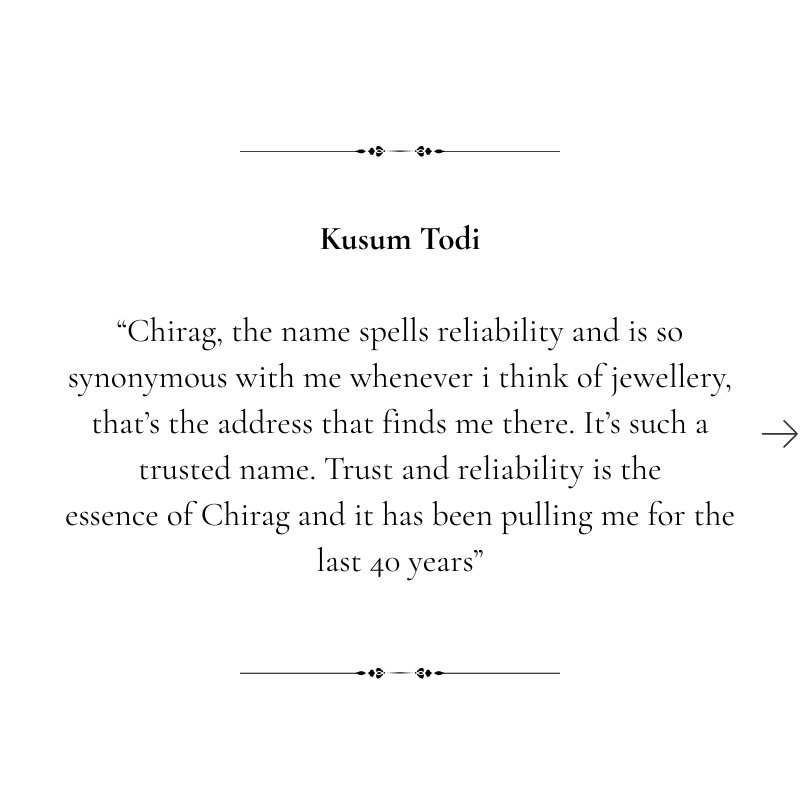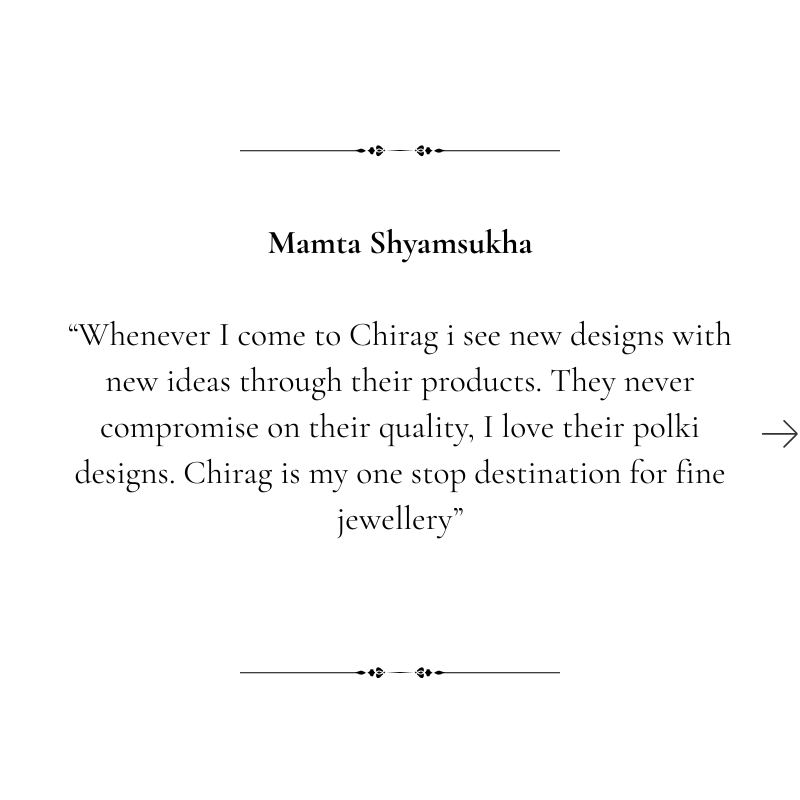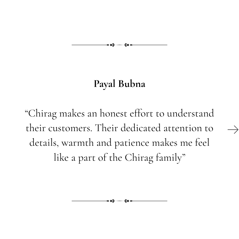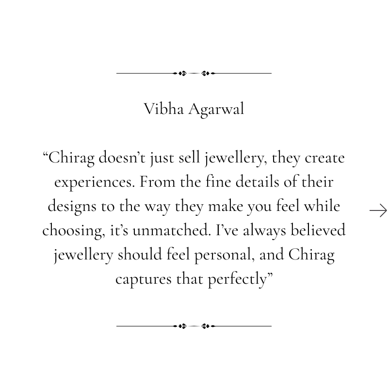 With over 50 years of heritage, each piece from Chirag Jewellers is a reflection of time-honored artistry. Our craftsmen pour generations of expertise into every detail so your jewellery isn't just worn, it’s passed down.
