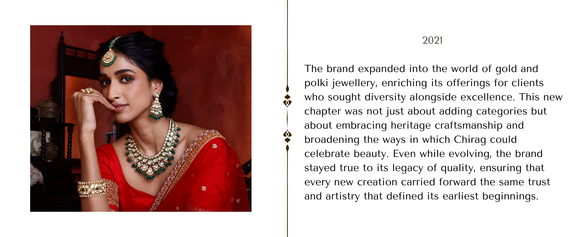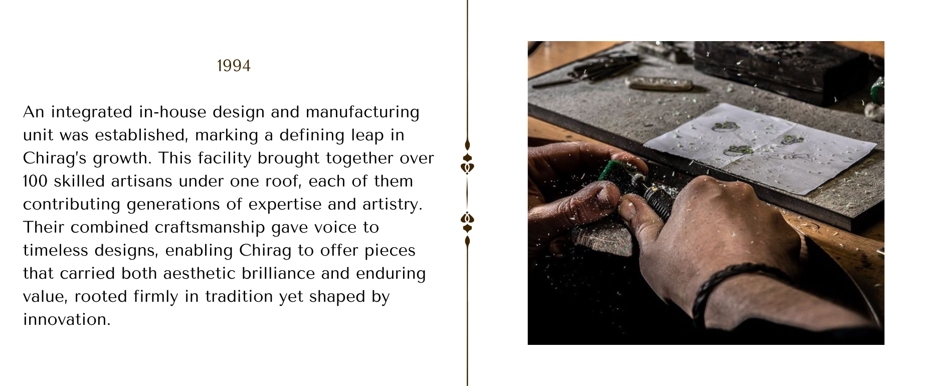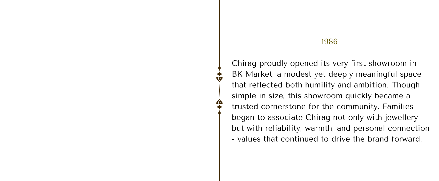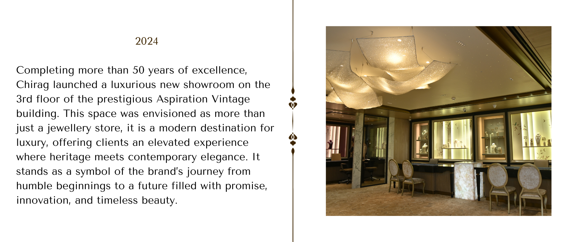 Today, from those humble beginnings, Chirag Jewellers stands as a name built on the same values grown into a legacy, serving over 8,000 loyal customers. The promise remains unchanged, jewellery that is not just worn, but cherished for generations.
